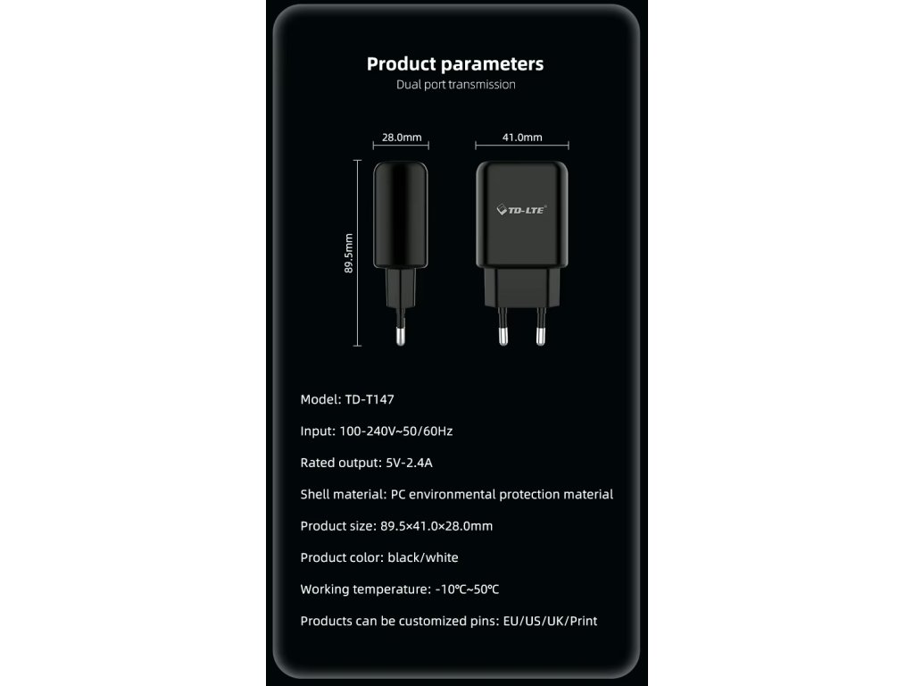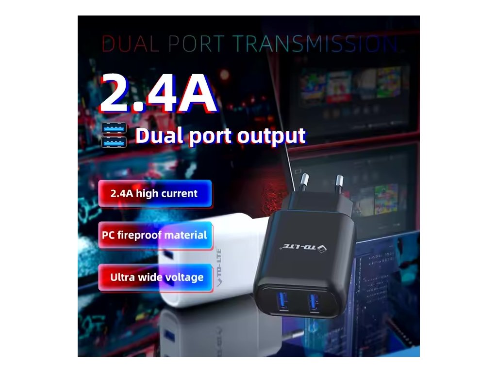 Nabíječka s dvěmi USB porty pro nabíjení maximálním výkonem 12W