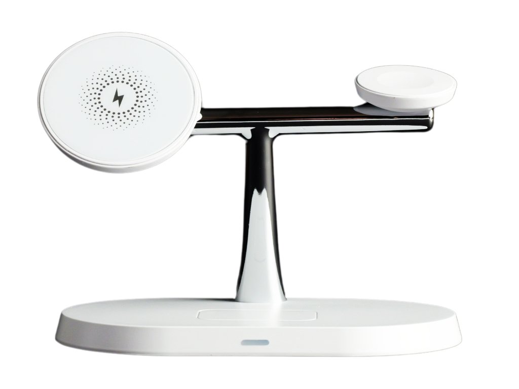 Elegantní 3v1 nabíjecí stanice s MagSafe, která nabije iPhone, Apple Watch i sluchátka současně – bez kabelového chaosu.