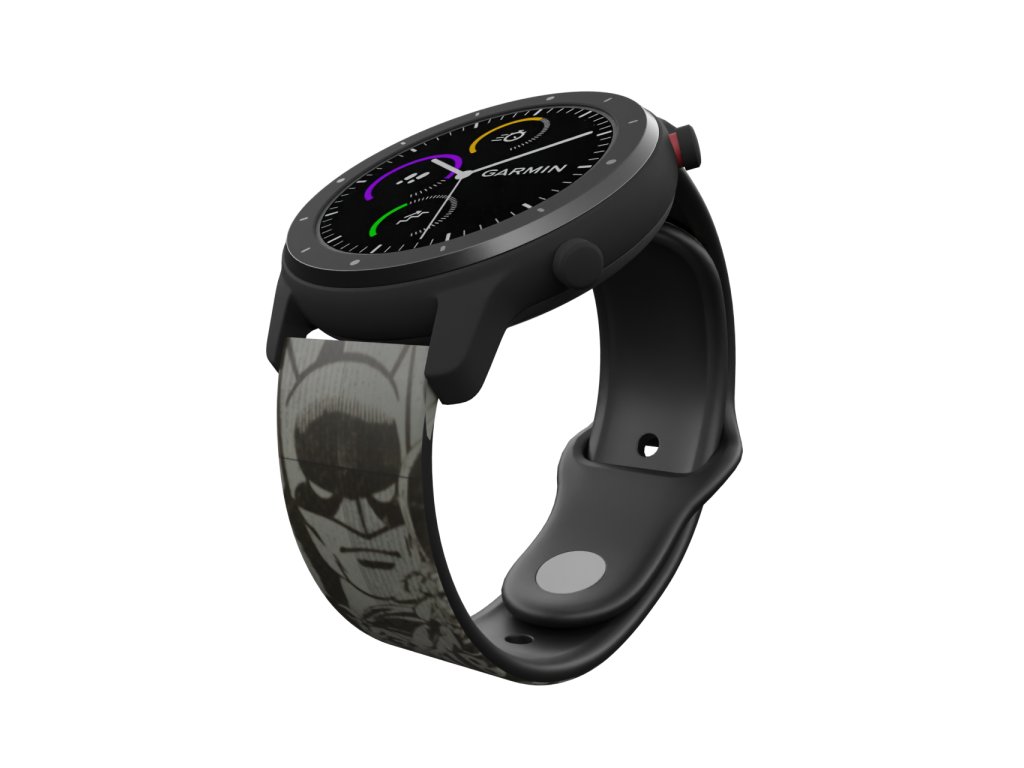 Černý náhradní řemínek s celopotiskem v šedé barvě oblíbené komiksové postavy Batmana