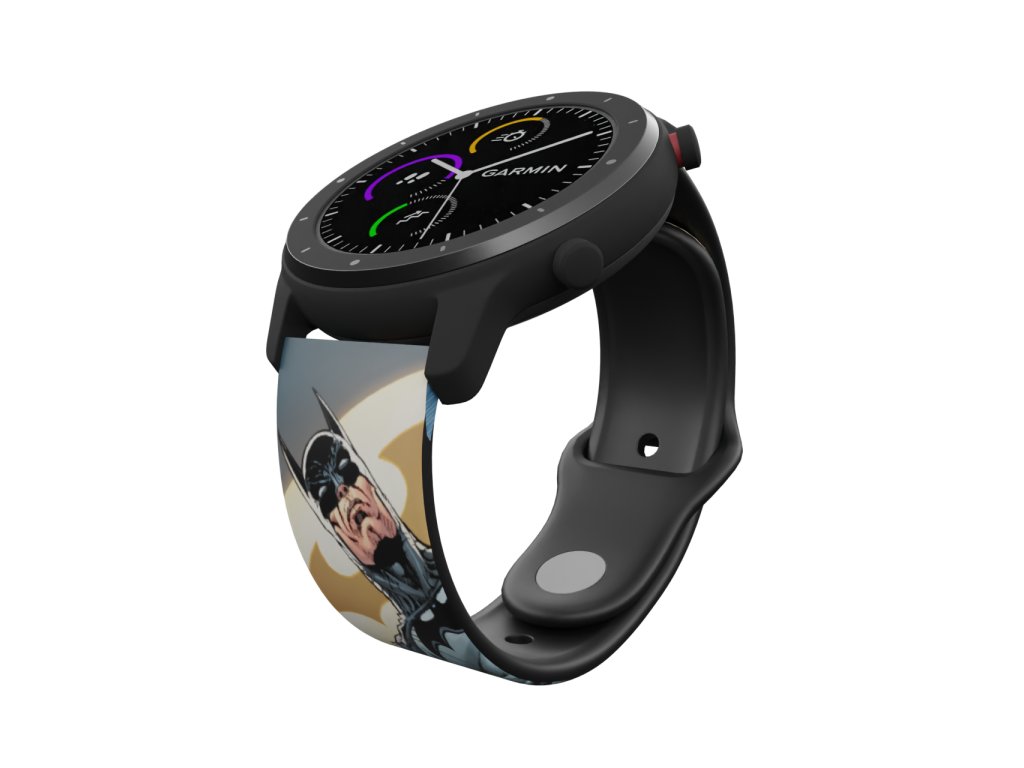 Černý náhradní řemínek s potiskem komiksového Batmana. Očekávej znamení a vyraz do ulic