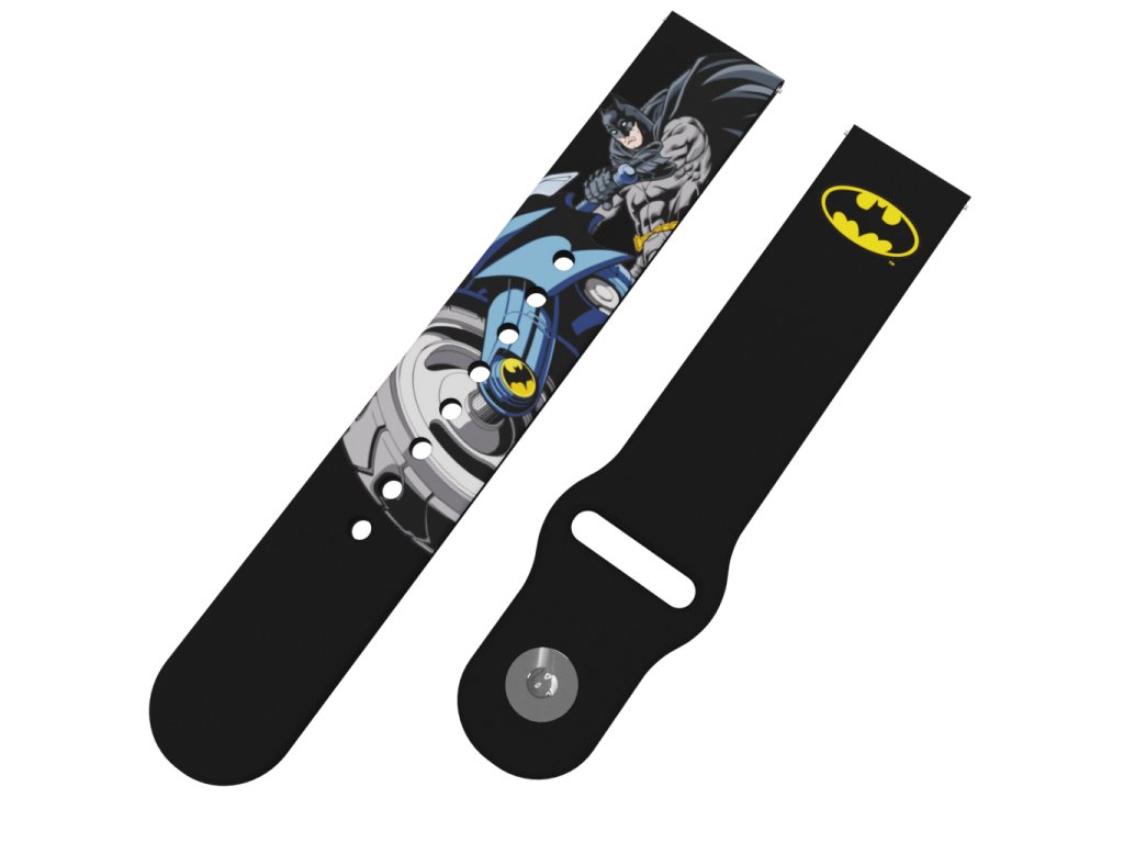 Černý náhradní řemínek s potiskem oblíbené komiksové postavy Batmana na motorce