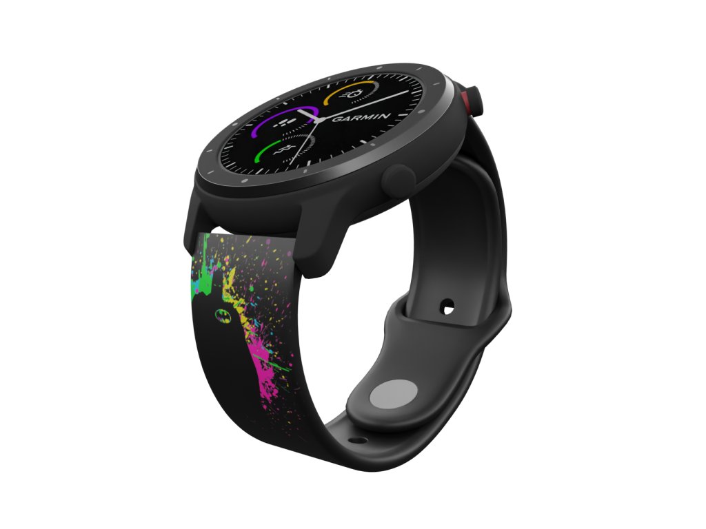 Černý náhradní řemínek pro chytré hodinky s barevnou siluetou superhrdiny z DC komiksu Batman