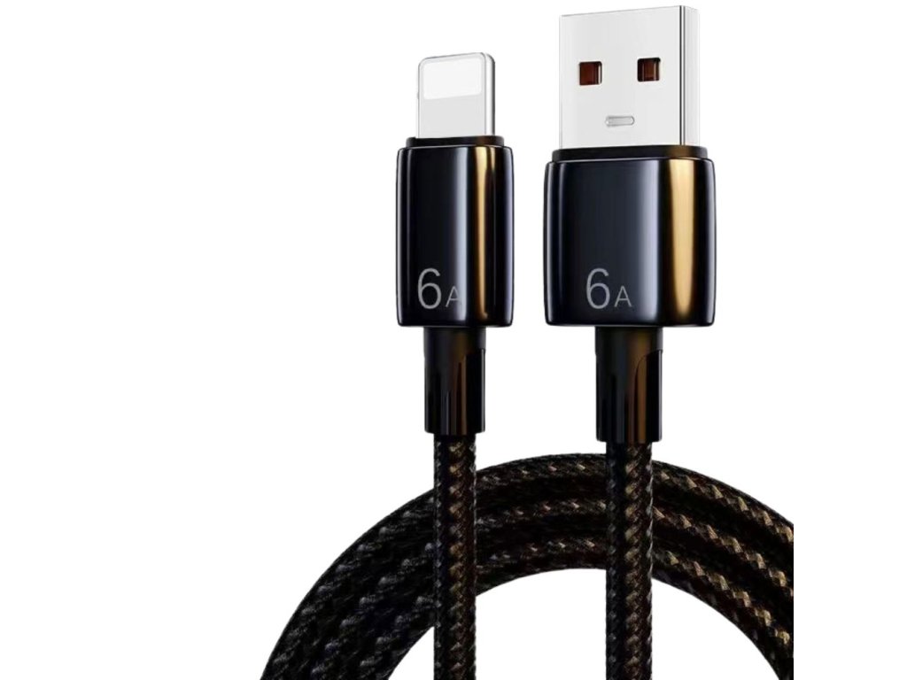 Opletený rychlonabíjecí kabel USB na Lightning dlouhý 1,5M v černé barvě.