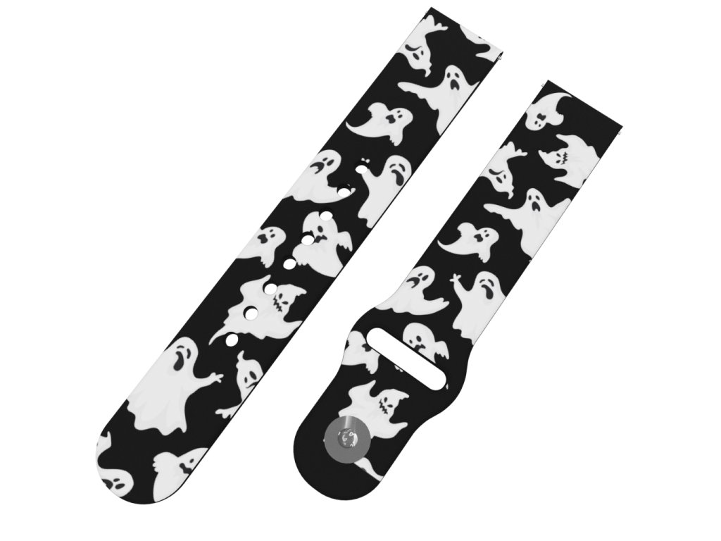 Černý náhradní řemínek pro chytré hodinky s bílým potiskem duchů jako z Ghostbusters.
