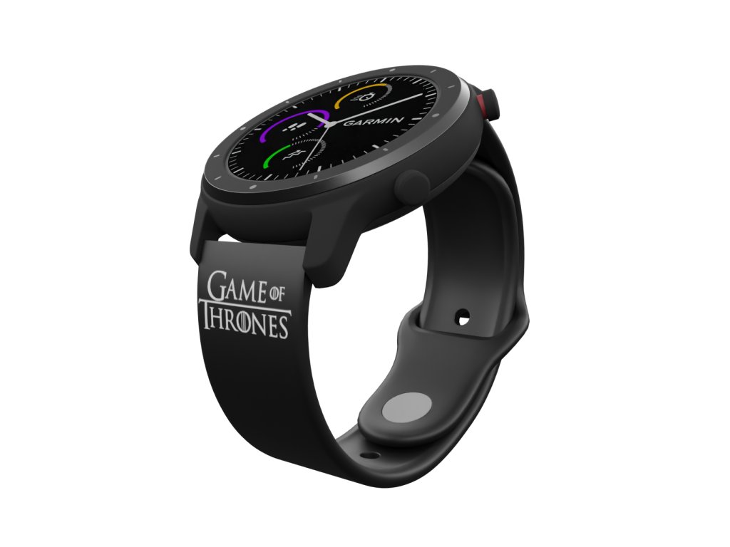 Černý náhradní řemínek s bílým potiskem loga Game of Thrones.