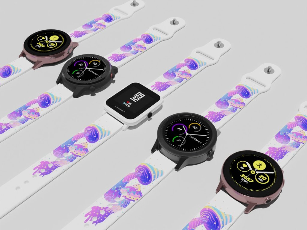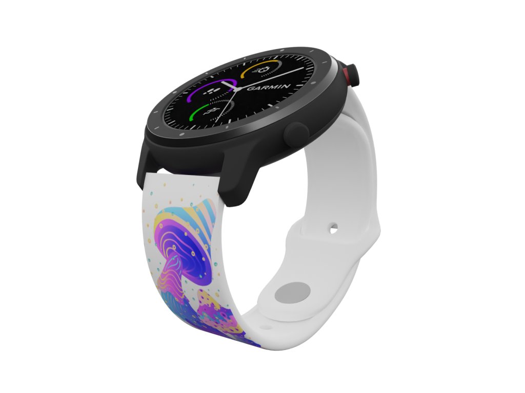 Bílý náhradní řemínek pro chytré hodinky s barevným potiskem Houbiček.