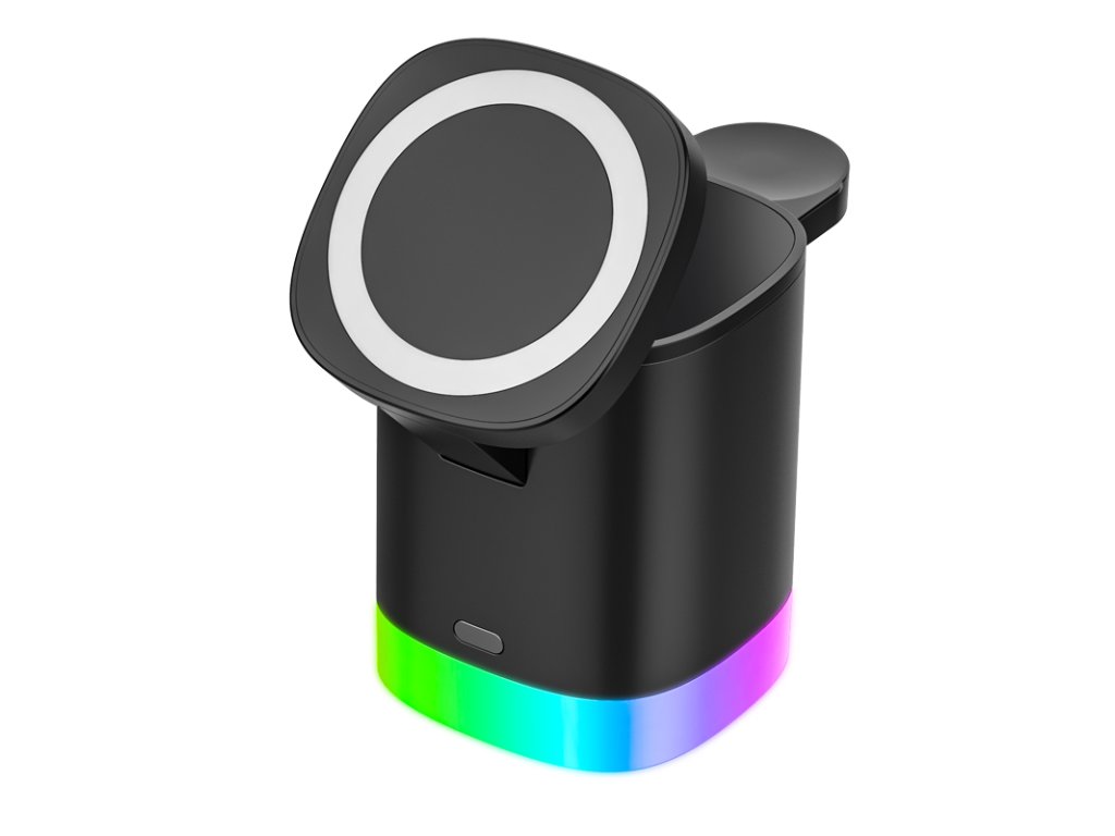 Stanice 3v1 je vhodná pro bezdrátové nabíjení telefonů s krytem Magsafe, sluchátek AirPods a Apple Watch hodinek.