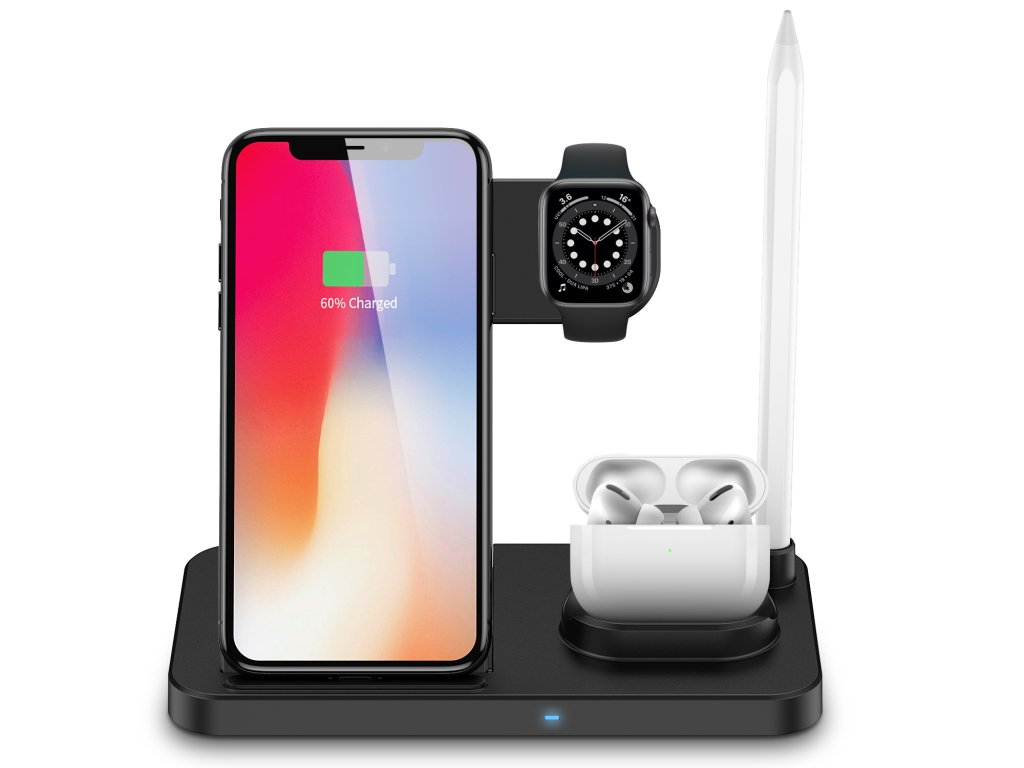 Nabíjecí stanice 4v1 pro mobilní telefony, hodinky Apple Watch, AirPods a Apple pencil.