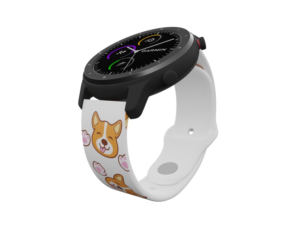 Bílý náhradní řemínek pro chytré hodinky s potiskem roztomilého pejska.