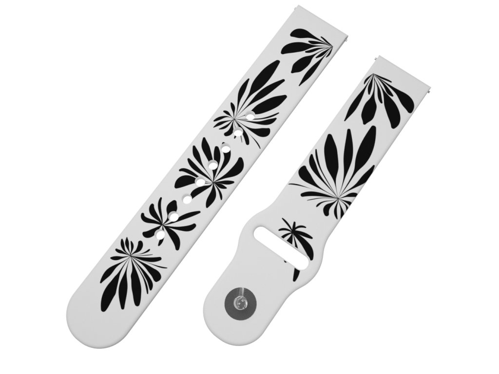 Bílý náhradní řemínek pro chytré hodinky s potiskem černých květů.