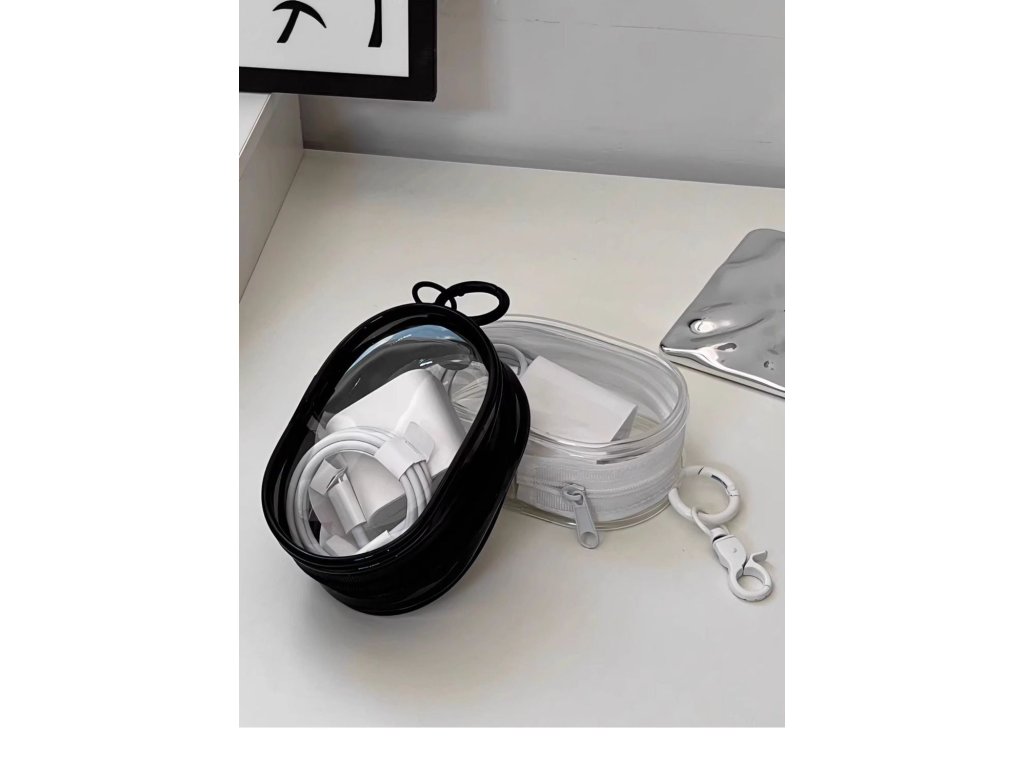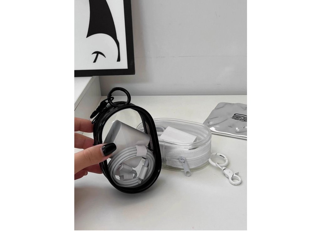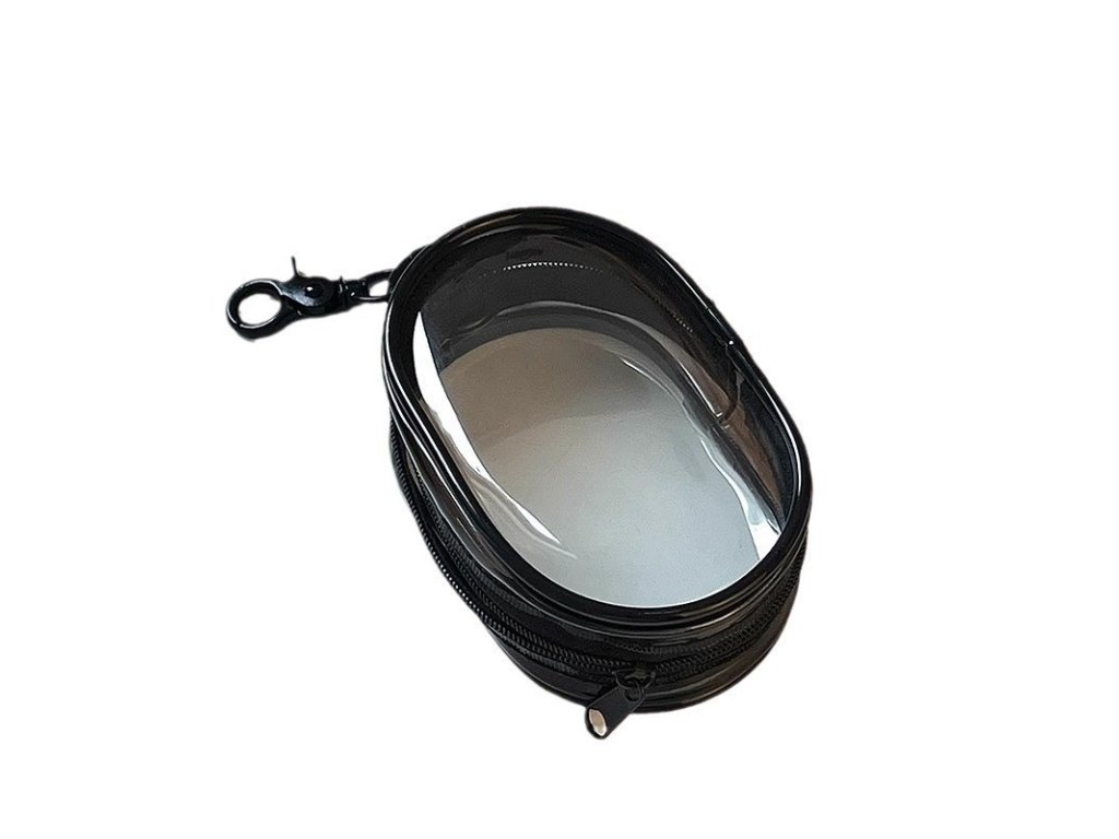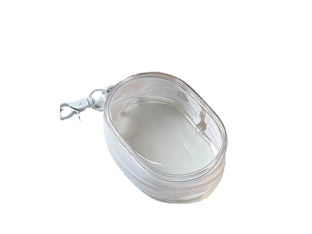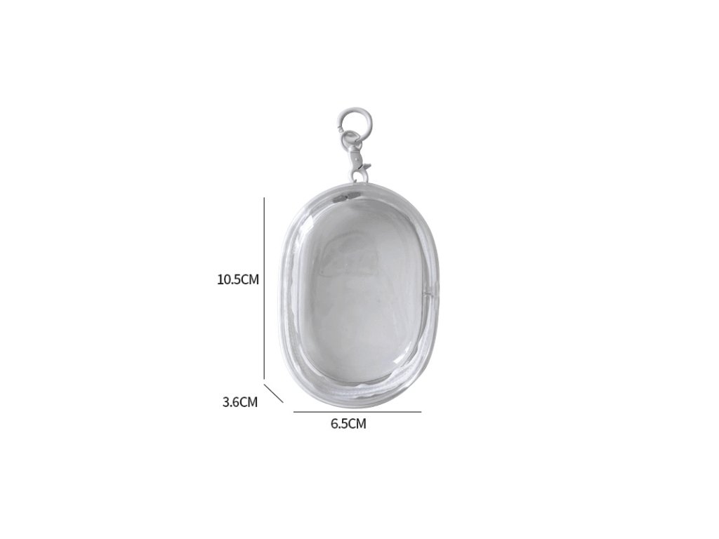 Průhledné úložné pouzdro o rozměrech 10,5 cm x 6,5 cm x 3,6 cm.