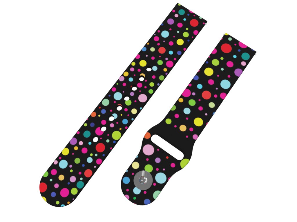 Černý náhradní řemínek s barevnými puntíky. Zamilujte se do barevné palety malých