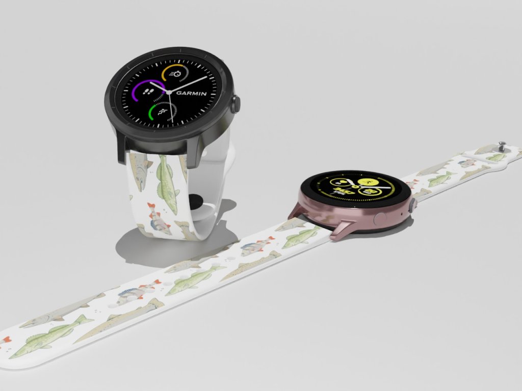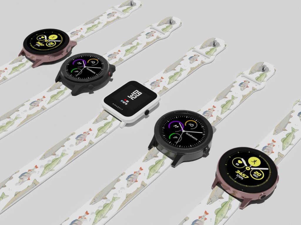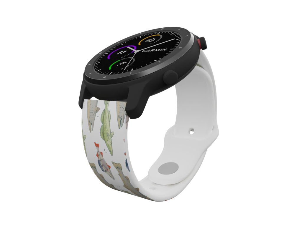 Bílý náhradní řemínek pro chytré hodinky s potiskem ryb.