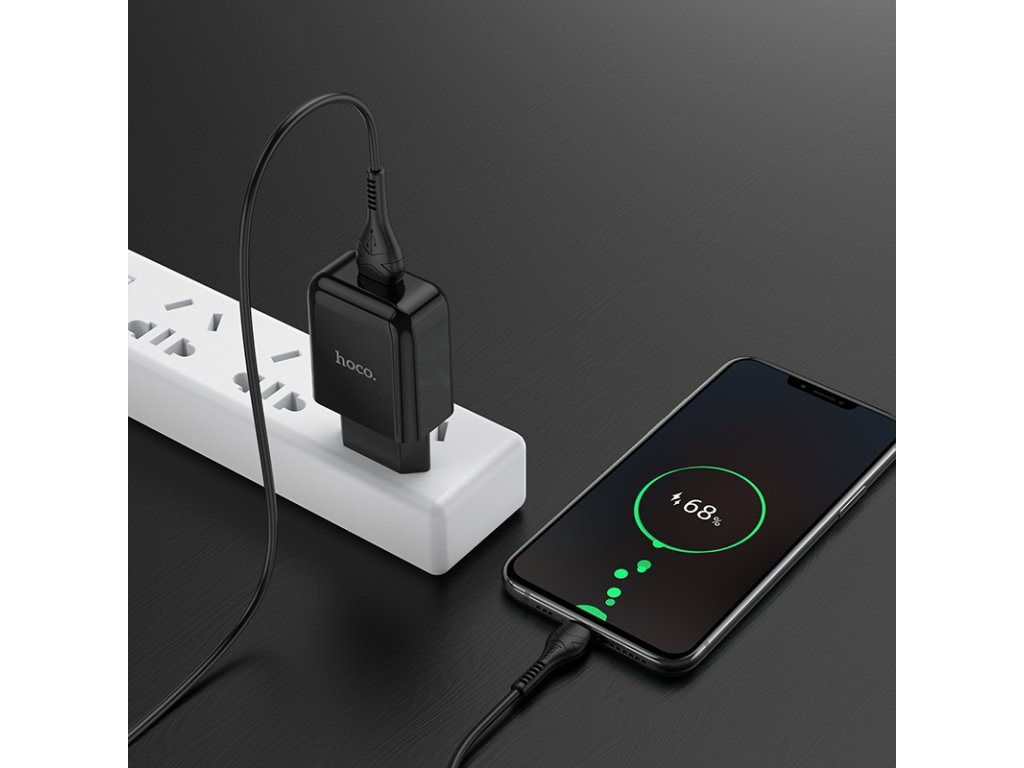 Hoco set adaptéru s USB portem a s kabelem Micro USB 1m N2 Vigour černá