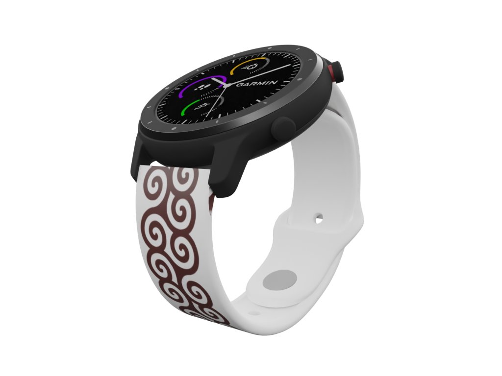 Bílý náhradní řemínek pro chytré hodinky s potiskem spirál.