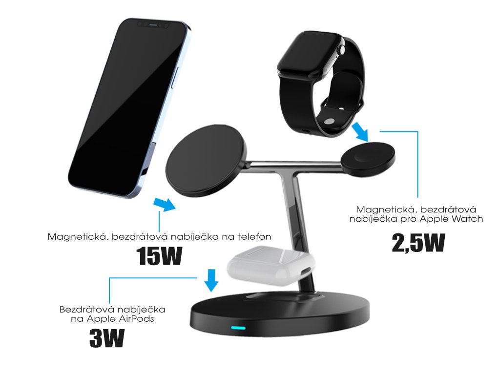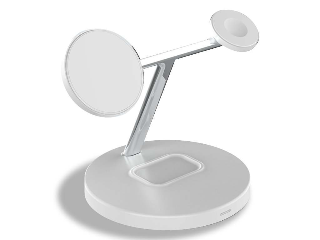 Stojací bezdrátová nabíječka 3v1 bílá