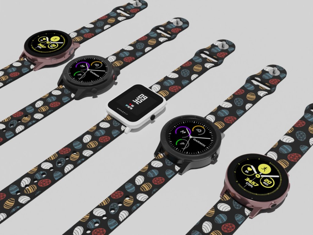 Černý náhradní řemínek pro chytré hodinky s potiskem vajíčka