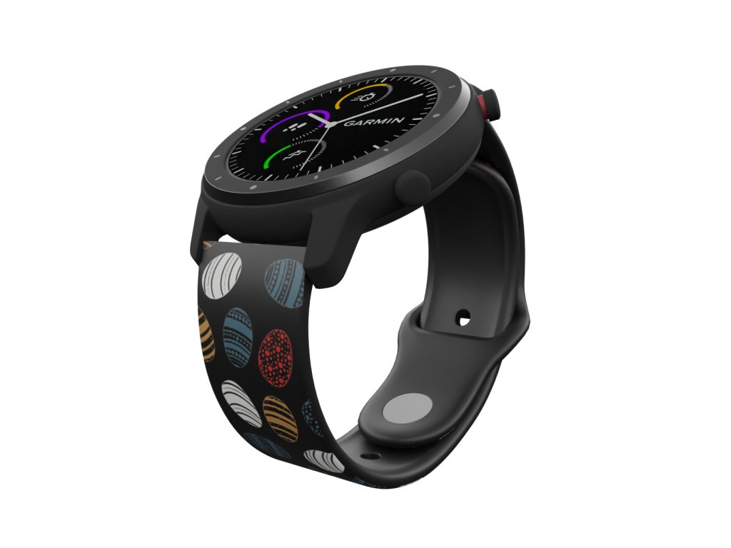 Černý náhradní řemínek pro chytré hodinky s potiskem vajíčka
