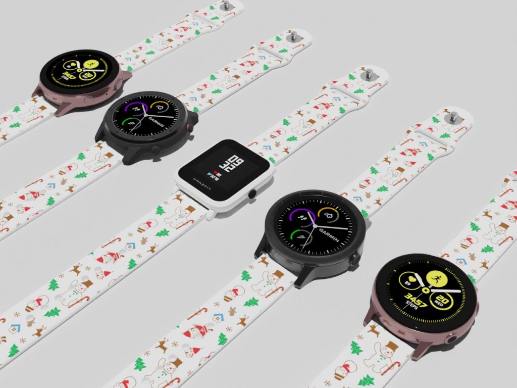 Bílý náhradní řemínek pro chytré hodinky s vánočním potiskem.