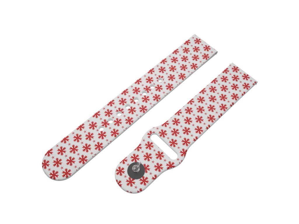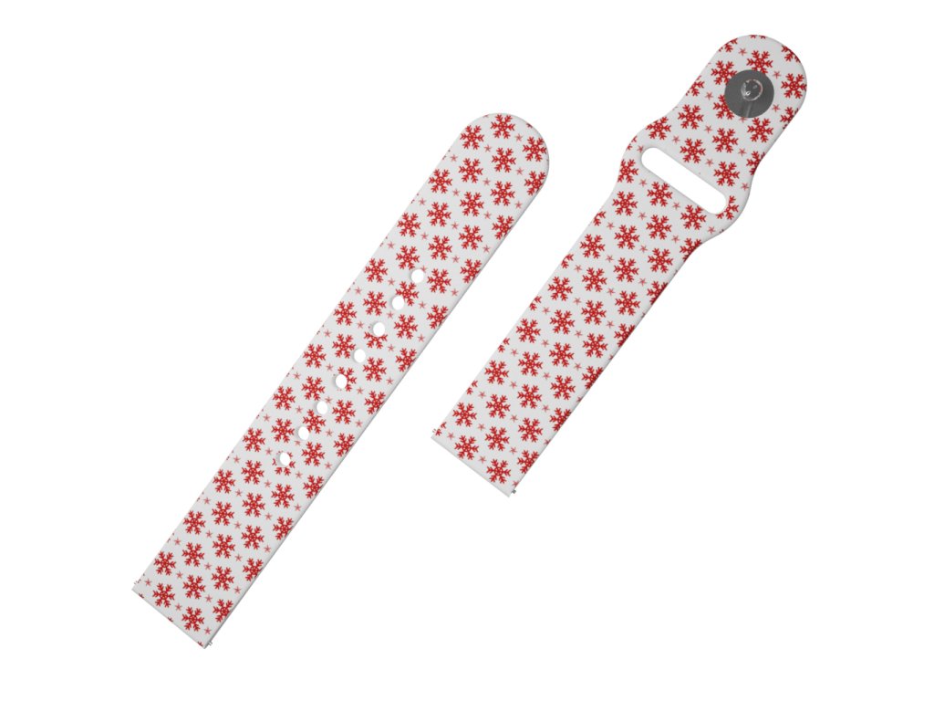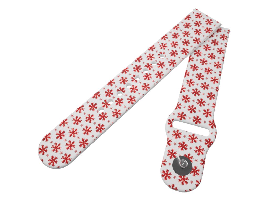 Bílý náhradní řemínek pro chytré hodinky s červeným potiskem sněhových vloček.