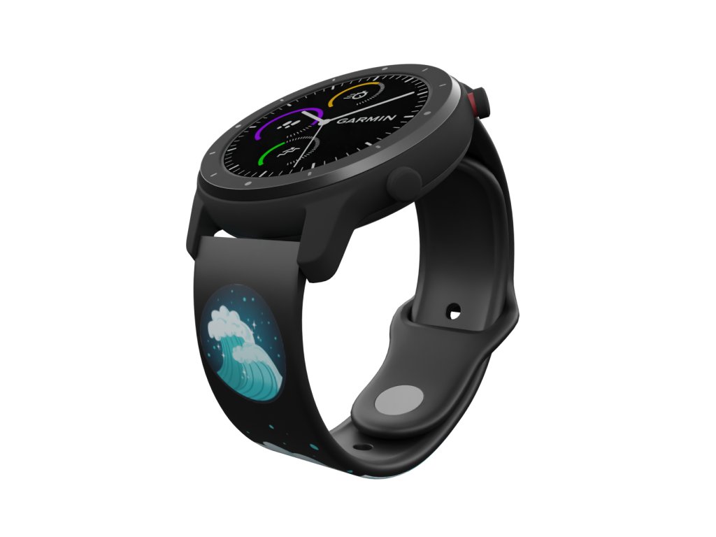 Černý náhradní řemínek pro chytré hodinky s potiskem živlu vody.